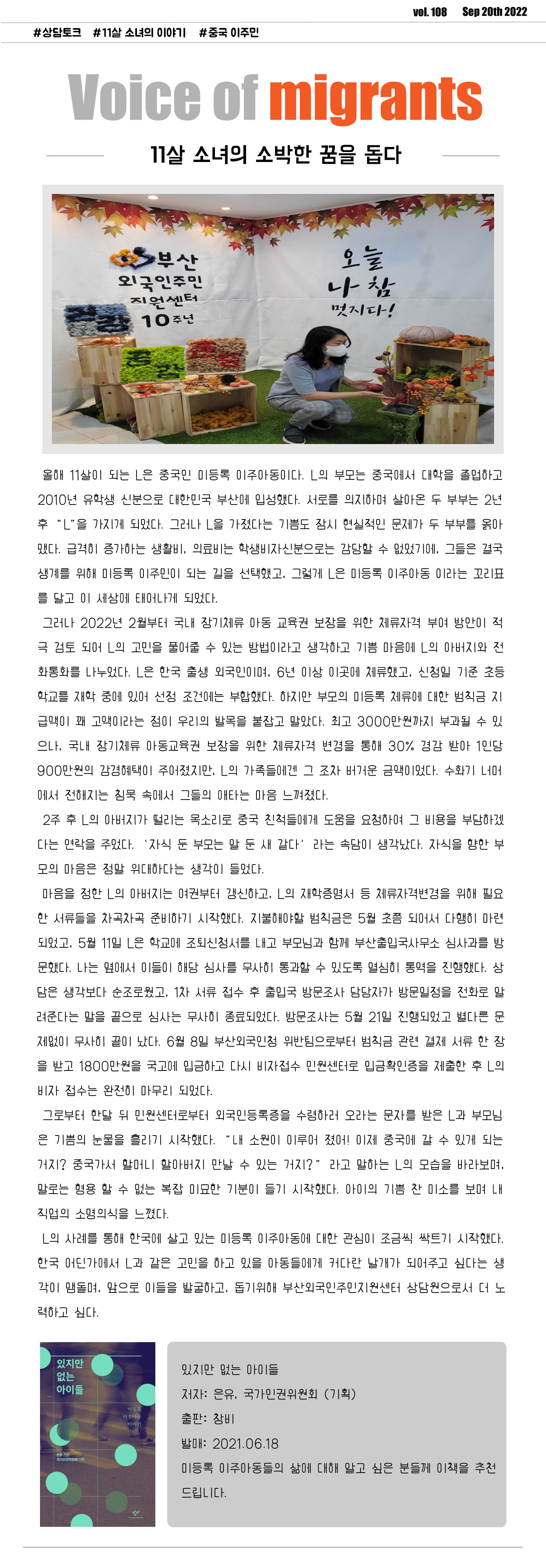2022년 9월 - 11살 소녀의 소박한 꿈을 돕다