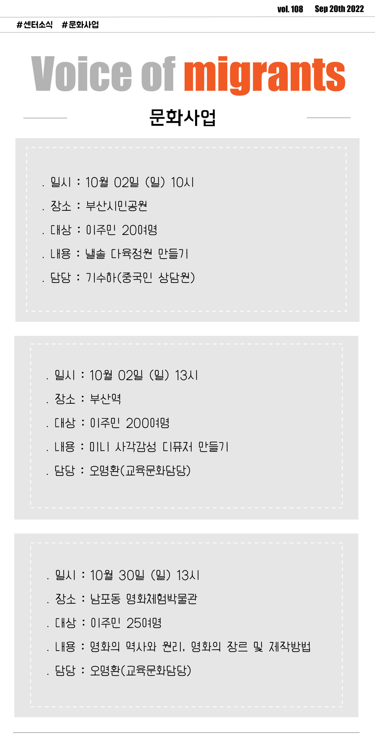2022년 9월 - 문화사업