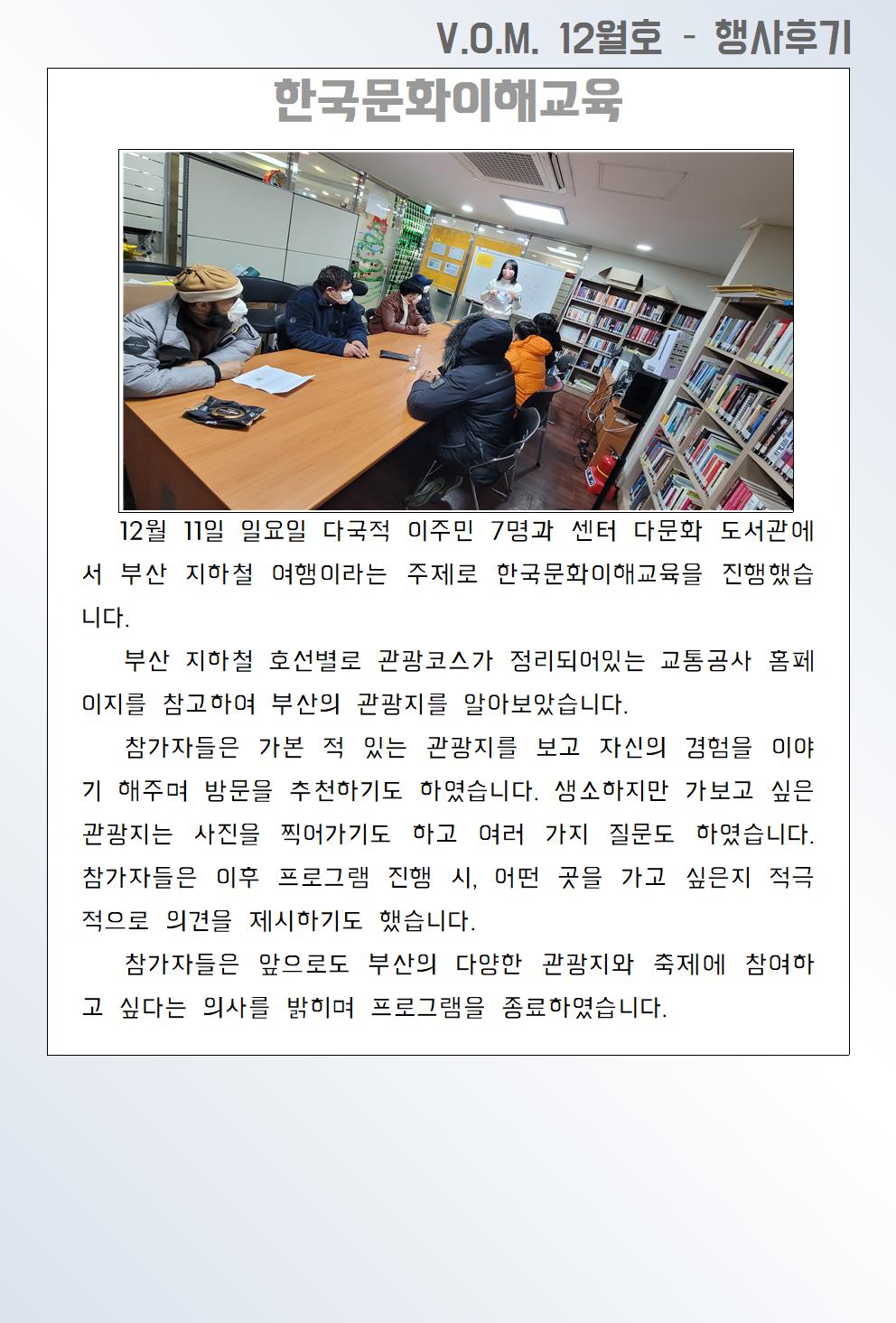 2022년 12월 - 한국어 교실 종강 및 수료식