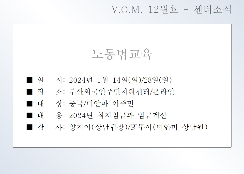 2023년 12월 - 2024년 1학기 한국어교육 수강생 모집