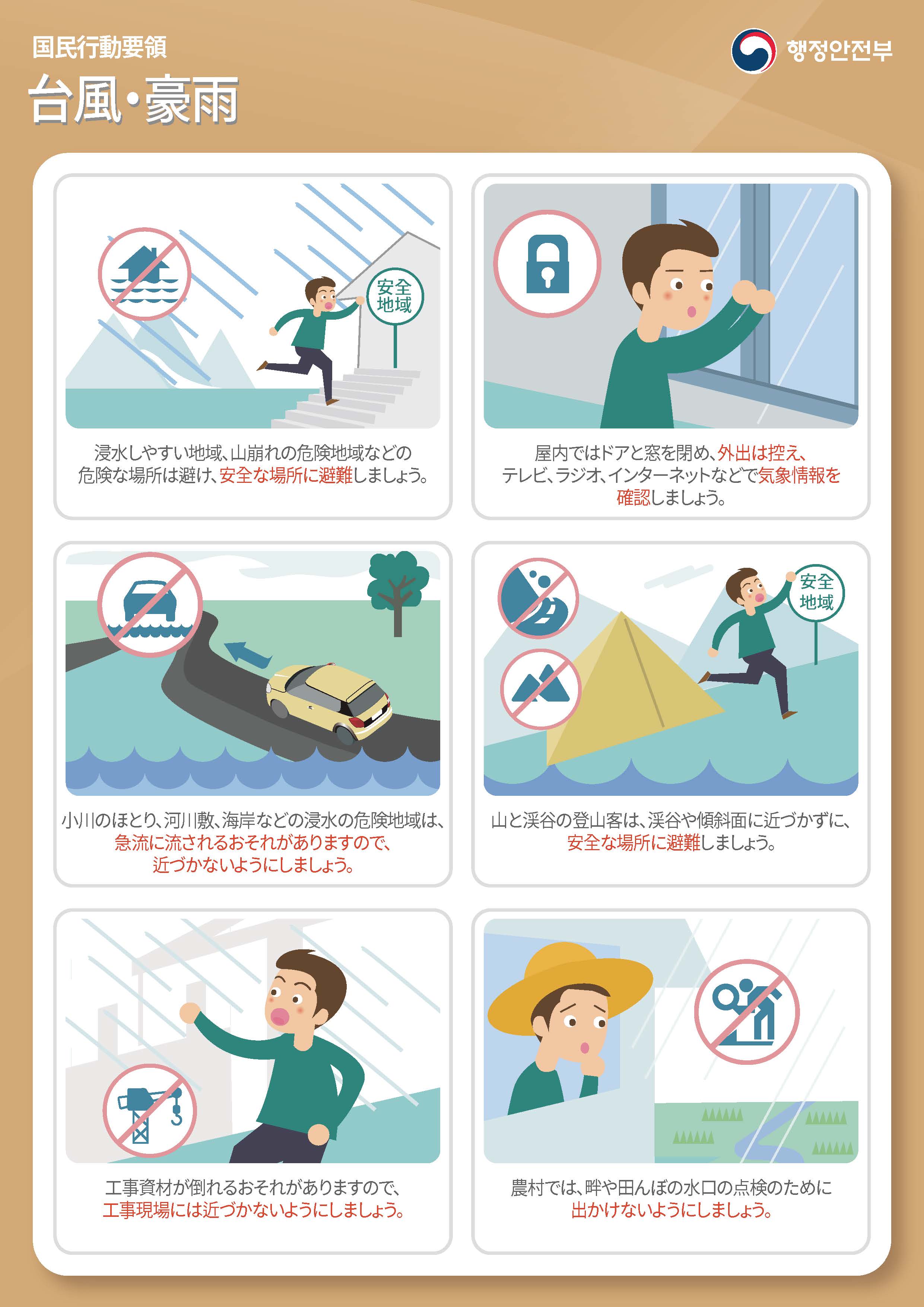 태풍, 호우 행동 요령 (국문, 태국어, 일본어)
