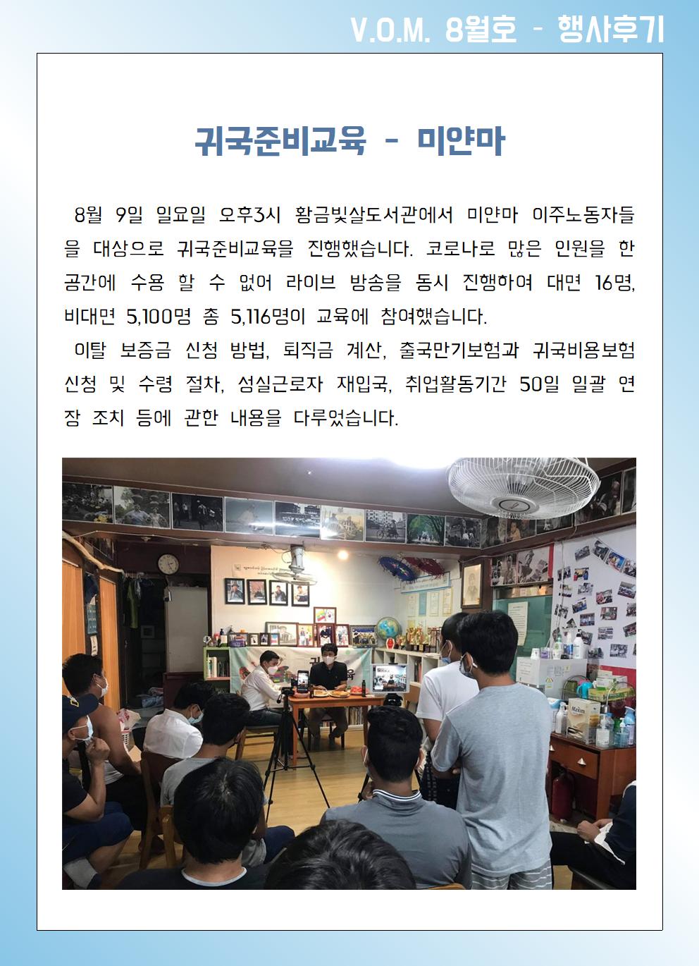 2020년 8월 – 귀국준비교육