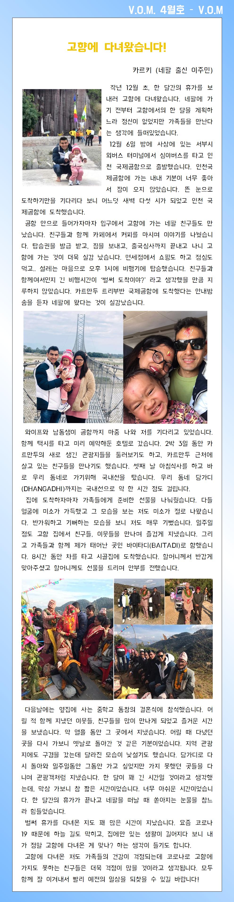2020년 4월 – 고향에 다녀왔습니다!