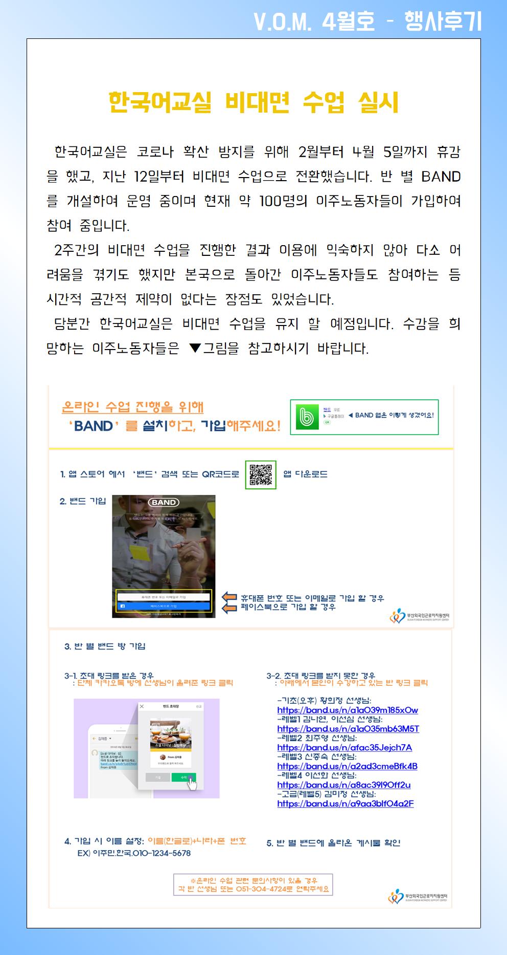 2020년 4월 – 한국어교실 비대면 수업 실시