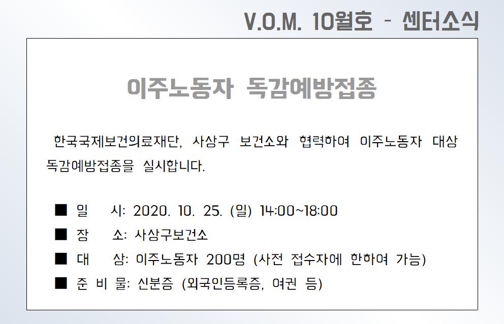 2020년 10월 – 대면상담 (방문 상담) 재개