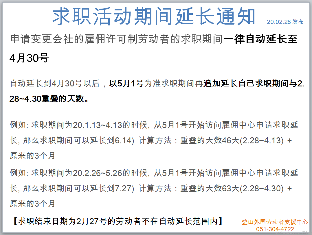 新冠病毒期间雇佣许可制劳动者求职期间延长通知