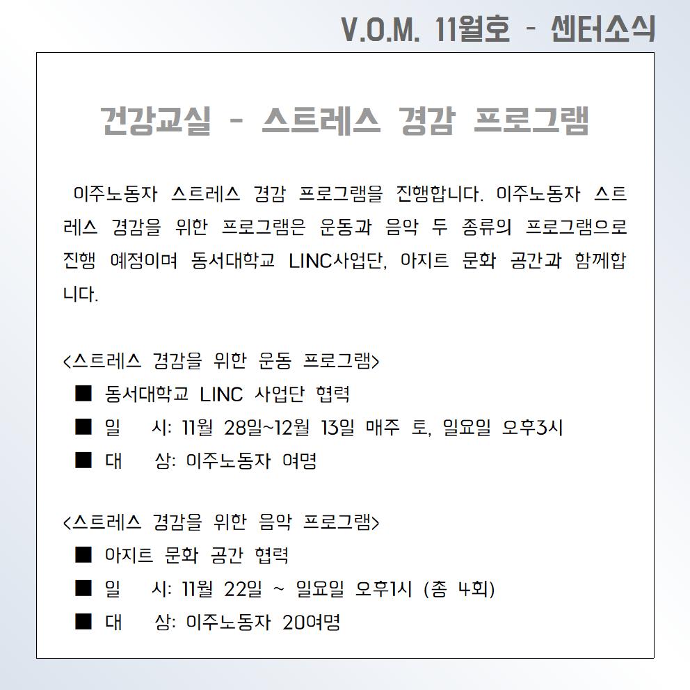 2020년 11월 – 건강교실 (스트레스 경감 프로그램)