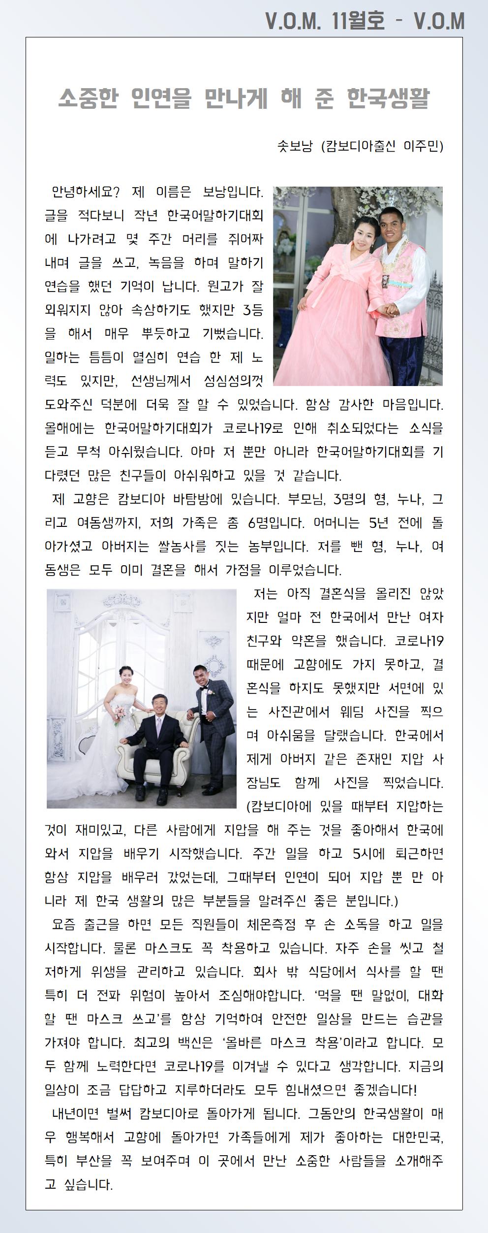 2020년 11월 – 소중한 인연을 만나게 해 준 한국생활