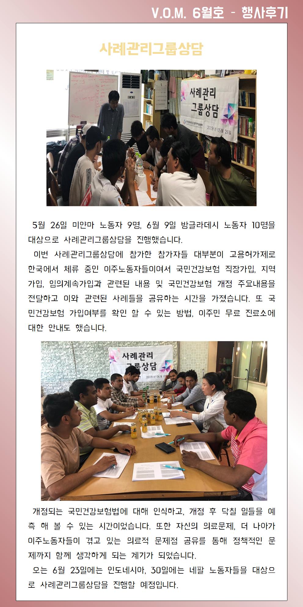 2019년 6월 – 사례관리그룹상담