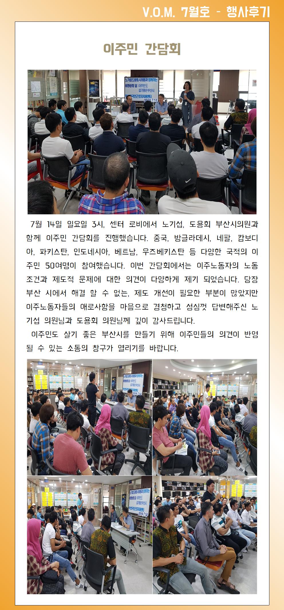 2019년 7월 – 이주민간담회