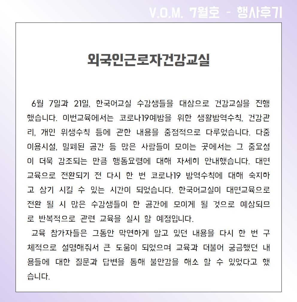 2020년 7월 – 외국인근로자건강교실