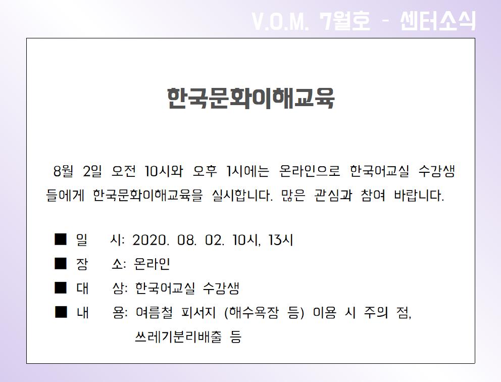 2020년 7월 – 한국문화이해교육
