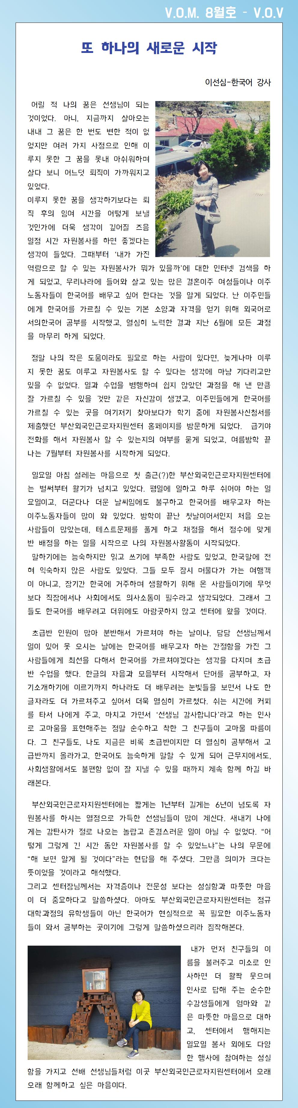 자원활동가의 소감(VOV)