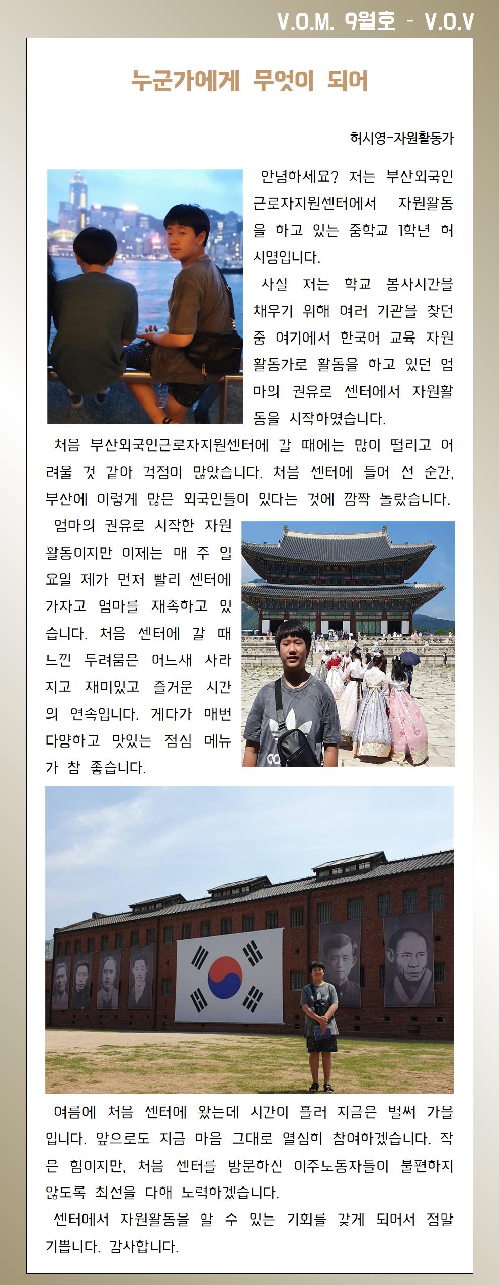 자원활동가의 소감(VOV)