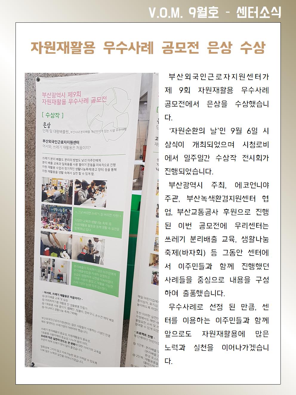2019년 9월 – 자원재활용 우수사례 공모전 은상 수상