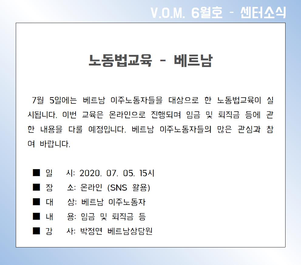 2020년 6월 – 노동법교육 (베트남)