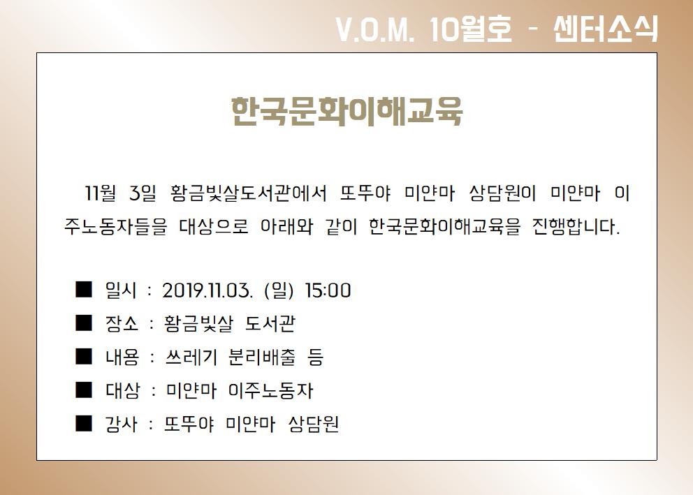 2019년 10월 – 한국문화이해교육