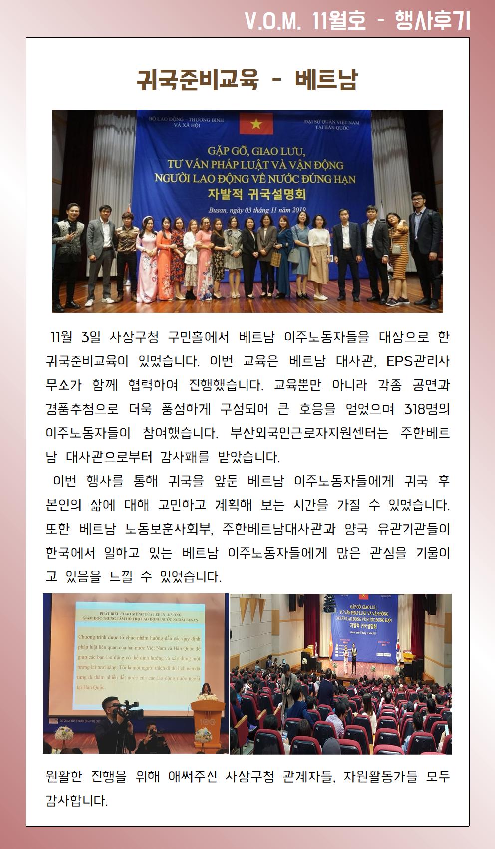 2019년 11월 – 귀국준비교육 (베트남)