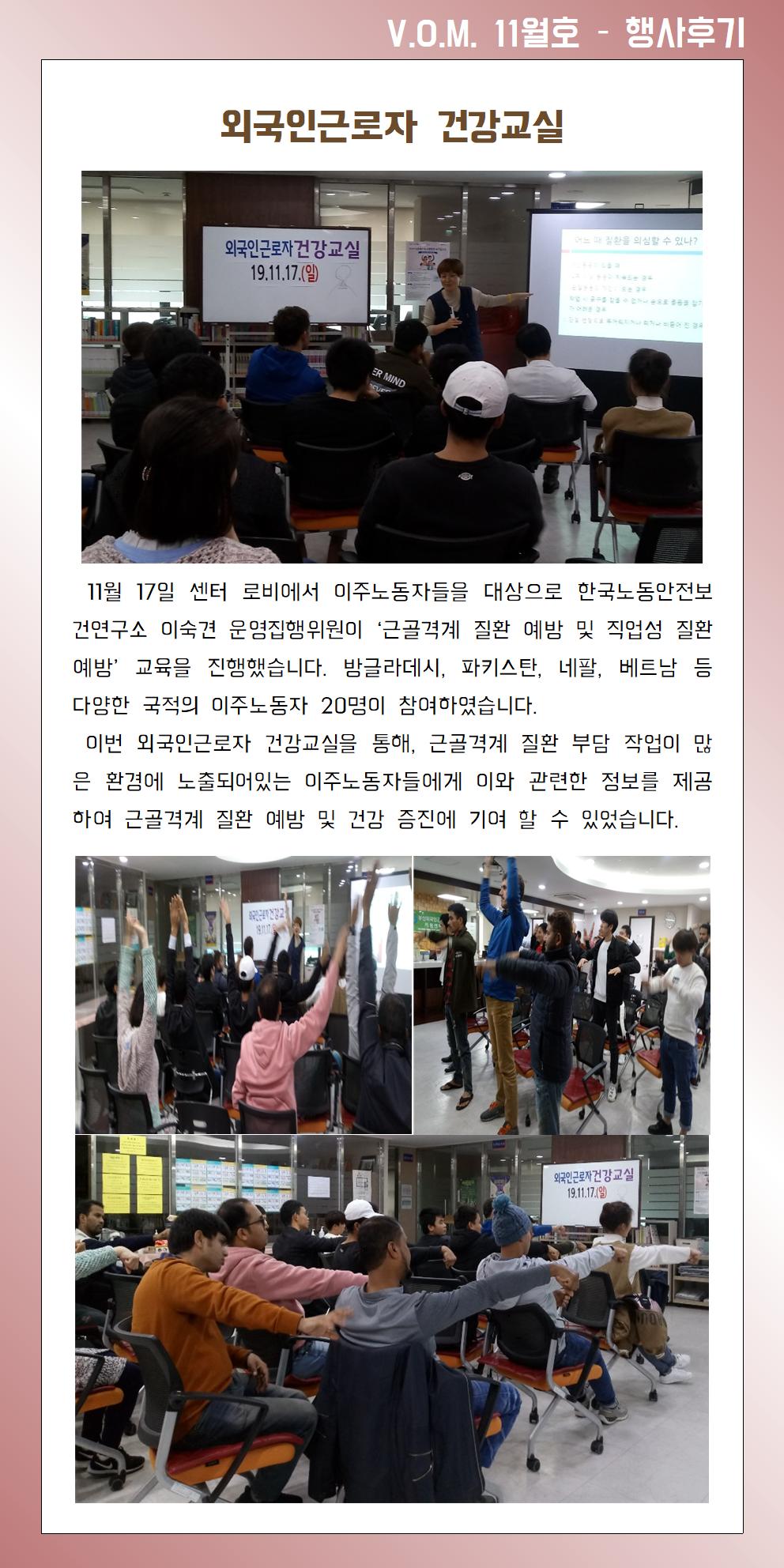 2019년 11월 – 외국인근로자 건강교실