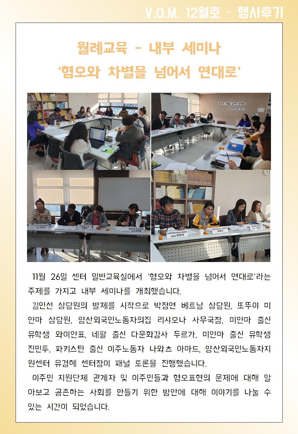 2019년 12월 – 내부 세미나