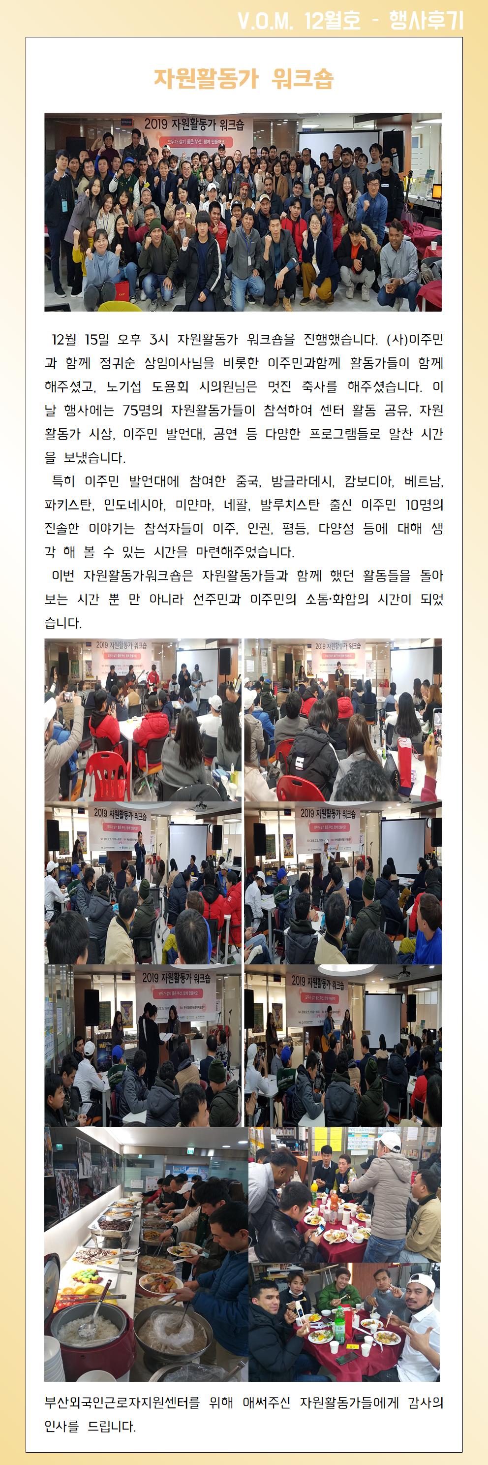 2019년 12월 – 자원활동가 워크숍