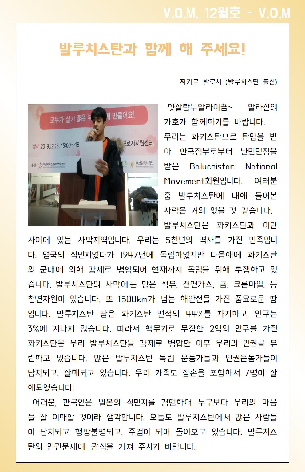 2019년 12월 – 발루치스탄과 함께 해 주세요!