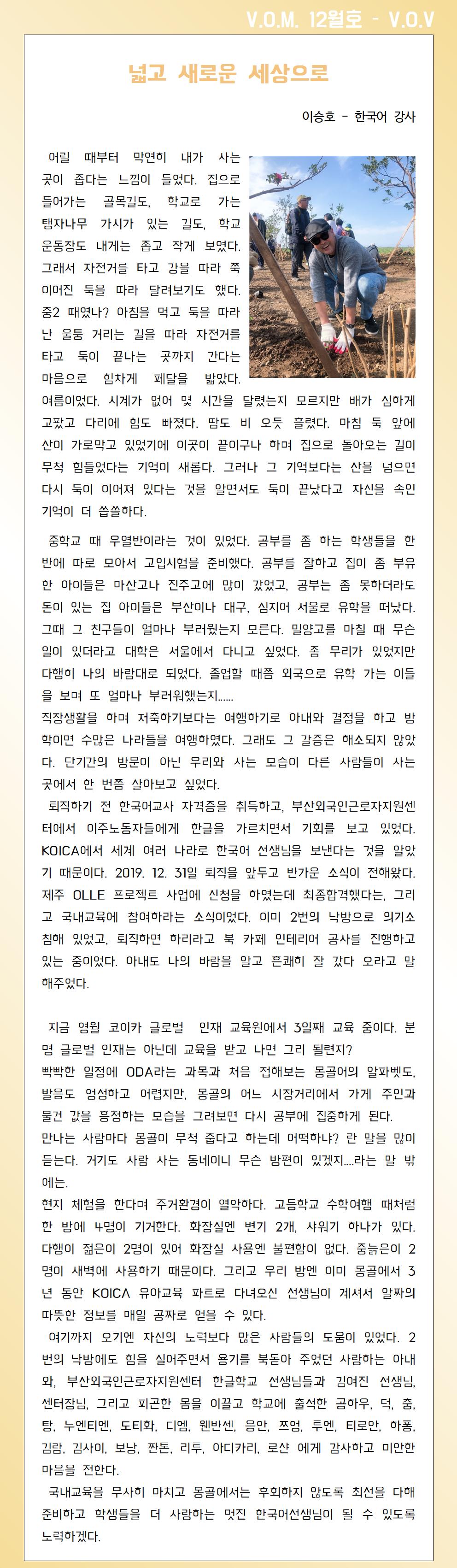 2019년 12월 – 넓고 새로운 세상으로
