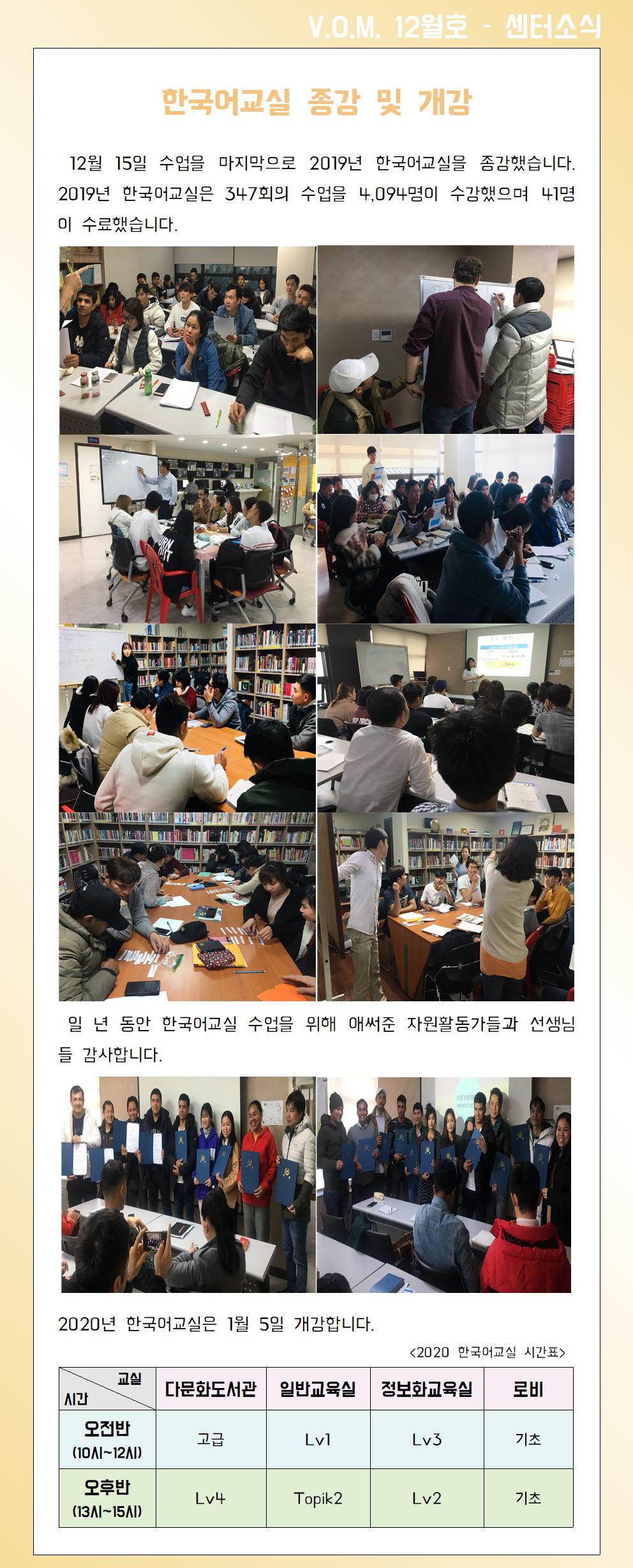 2019년 12월 – 한국어교실 종강 및 개강 안내