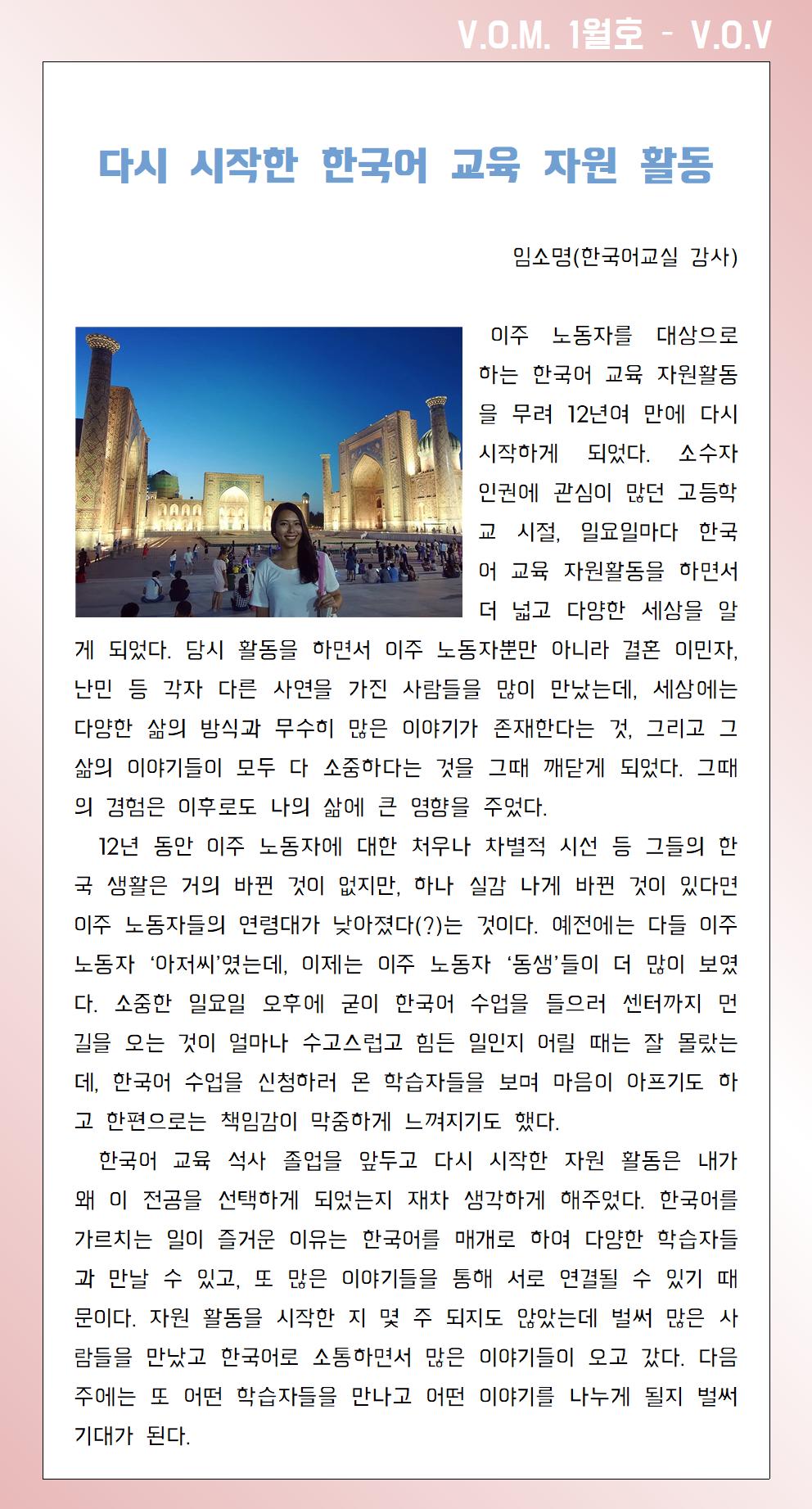 2020년 1월 – 다시 시작한 한국어 교육 자원 활동