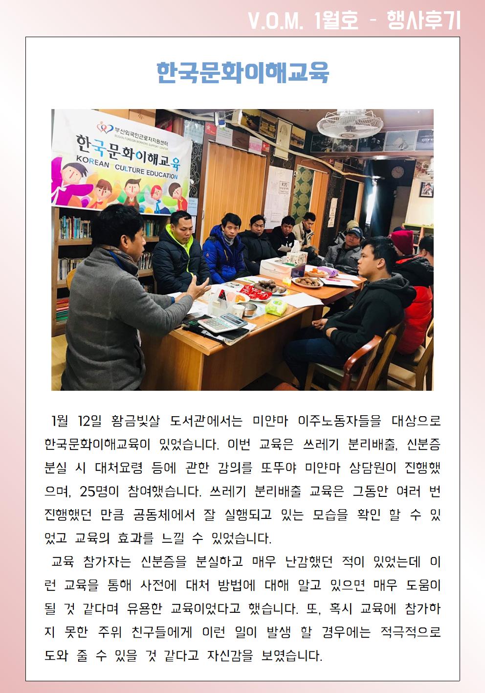 2020년 1월 – 한국문화이해교육