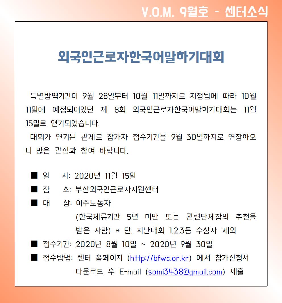 2020년 8월 – 외국인근로자한국어말하기대회 연기 안내