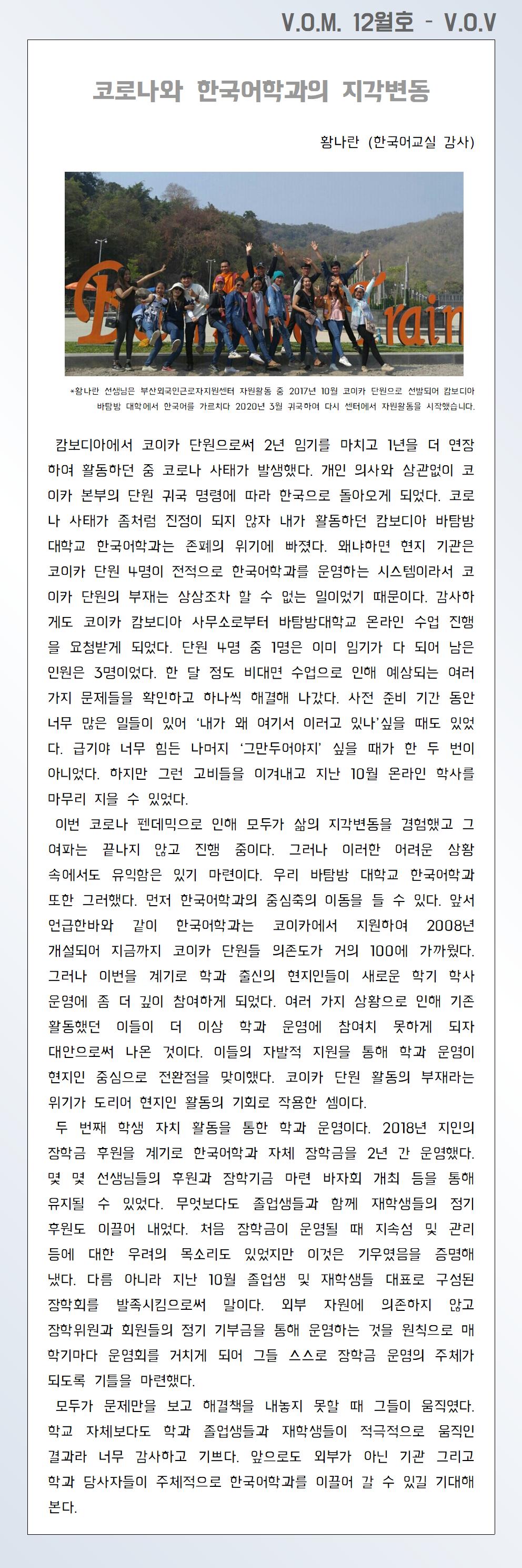 2020년 12월 – 코로나와 한국어학과의 지각변동