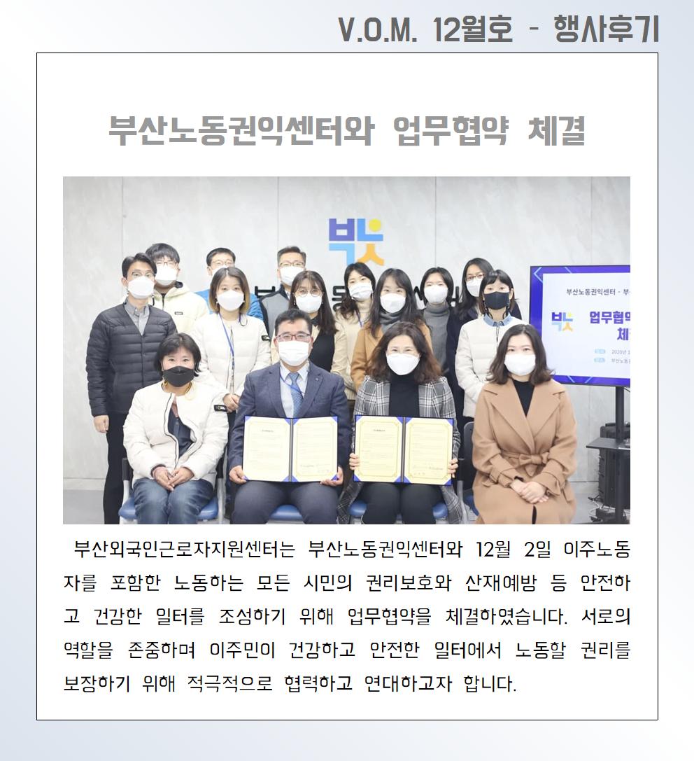 2020년 12월 – 부산노동권익센터와 업무협약 체결