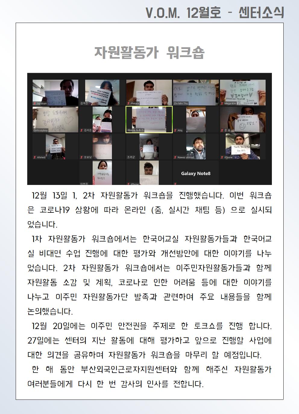 2020년 12월 – 자원활동가 워크숍