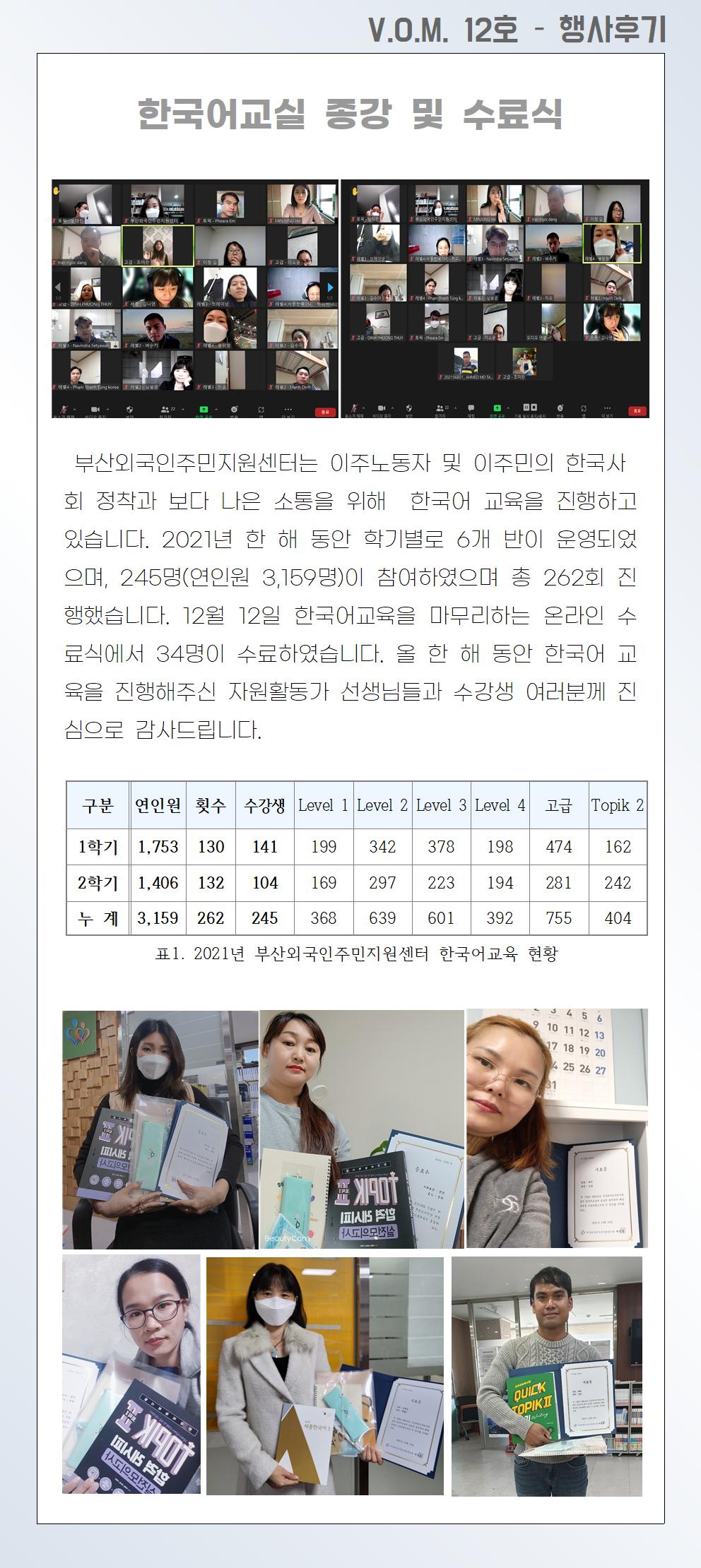 2021년 12월 - 2022년 1학기 한국어교육 수강생 모집