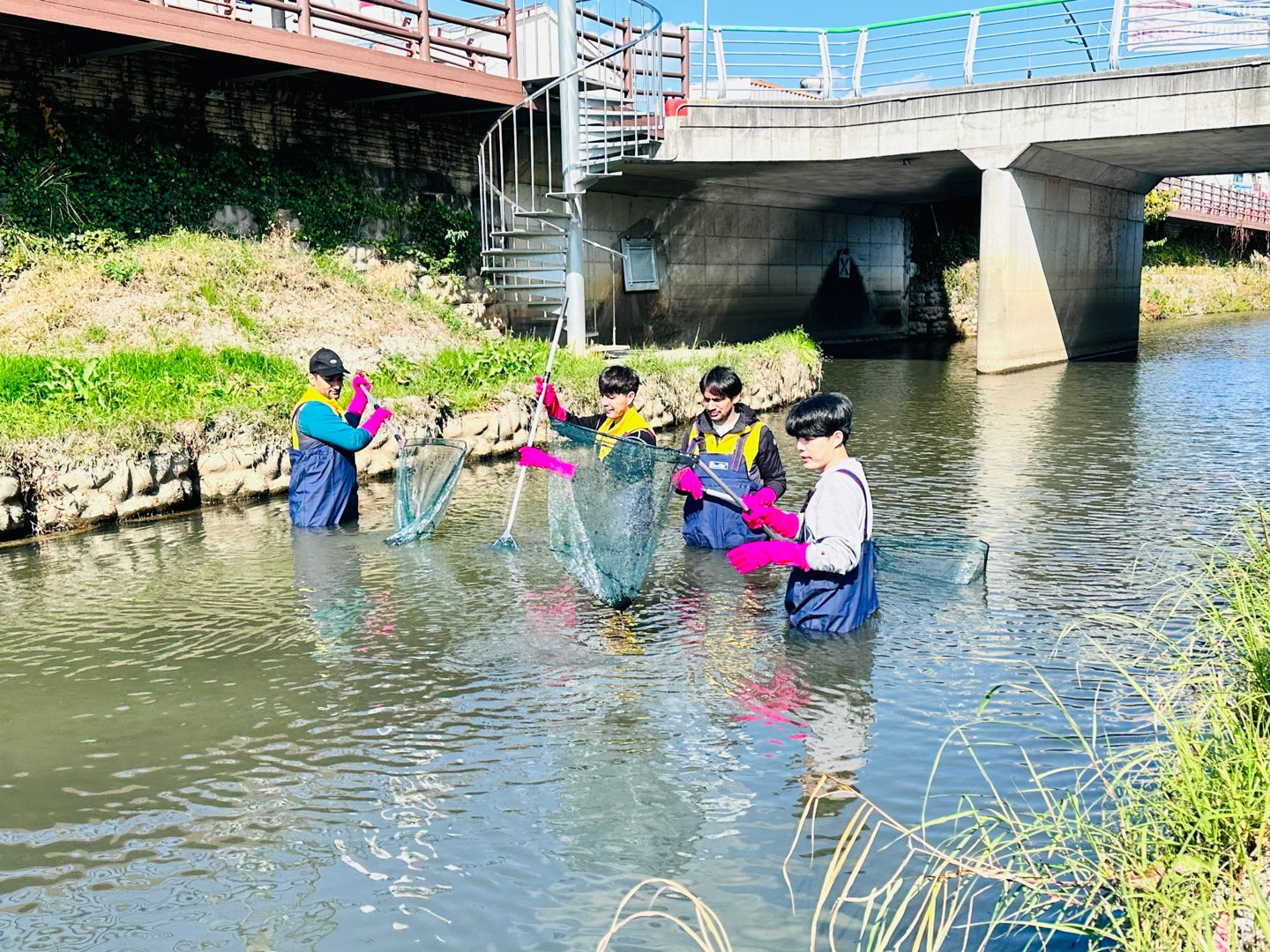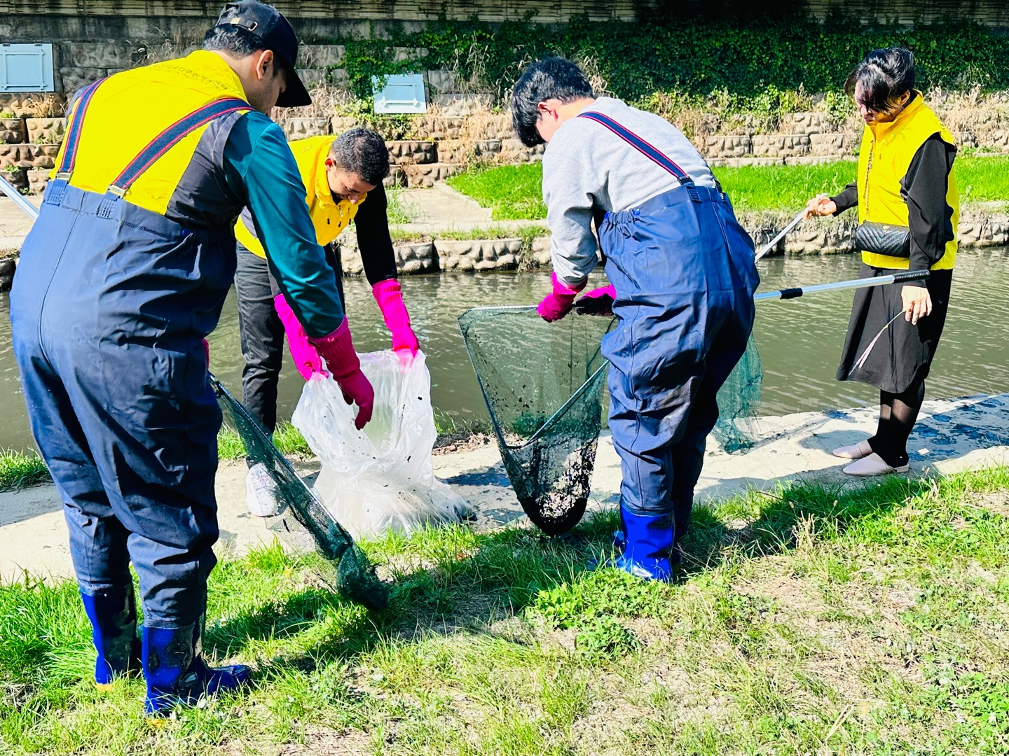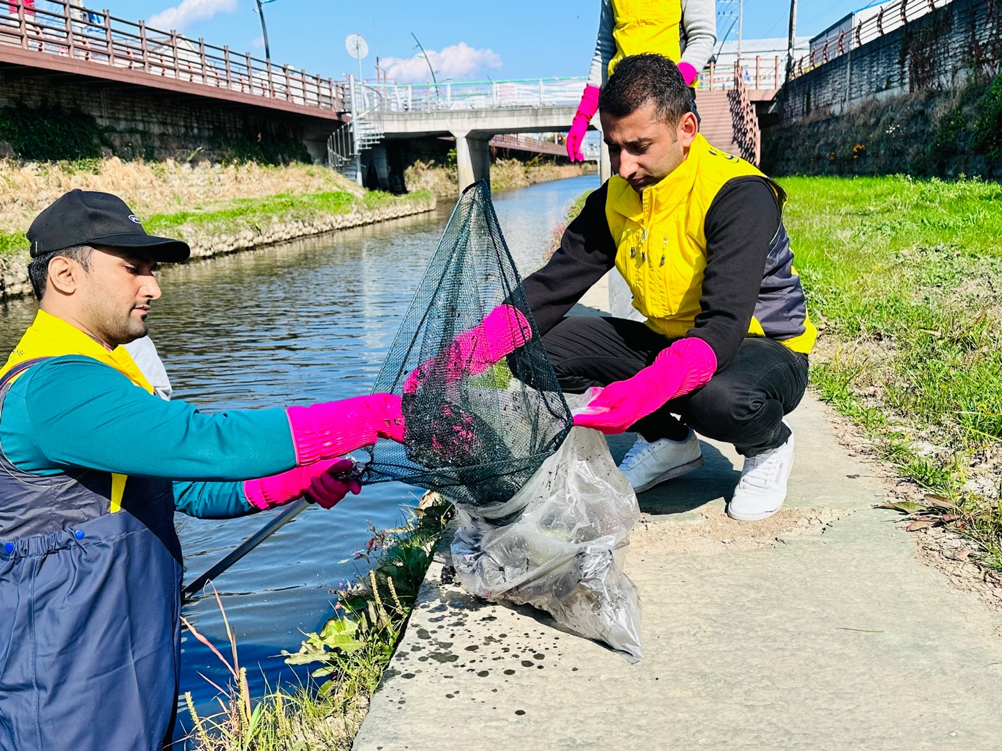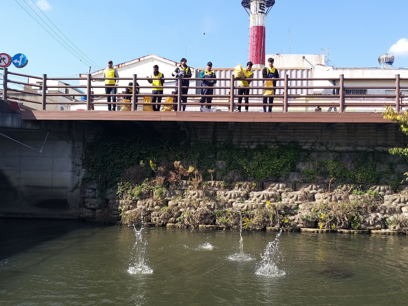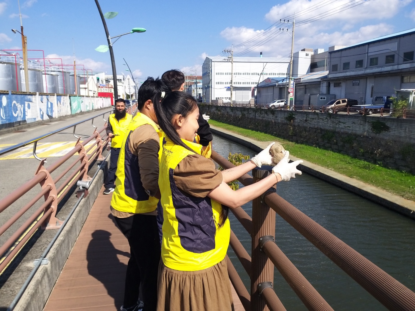 청명한 가을 하늘 아래 순조롭게 정화 작업을 진행할 수 있었고, 강 밑에 버려진 쓰레기를 수거하고, EM흙공을 던지는 것으로 활동을 마무리 했습니다.