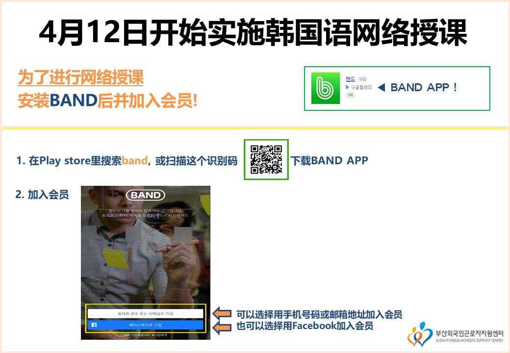 - 选择加入属于自己班级的BAND3-1. 如果收到了邀请链接 : 点击由老师发到kakaotalk集体对话房里的链接3-2. 如果没有收到邀请链接:点击下列自己需要听课班级的链接 -基础(下午) 황희정 老师: https://band.us/n/a1a039m185x0w -level1 김나연, 이선심老师: https://band.us/n/a1a035mb63M5T - level2 최주영老师: https://band.us/n/afac35Jejch7A - level3 신종숙老师: https://band.us/n/a2ad3cmeBfk4B - level4 이선화老师: https://band.us/n/a8ac39l90ff2u -高级(level 5) 김미정老师: https://band.us/n/a9aa3blf04a2F
