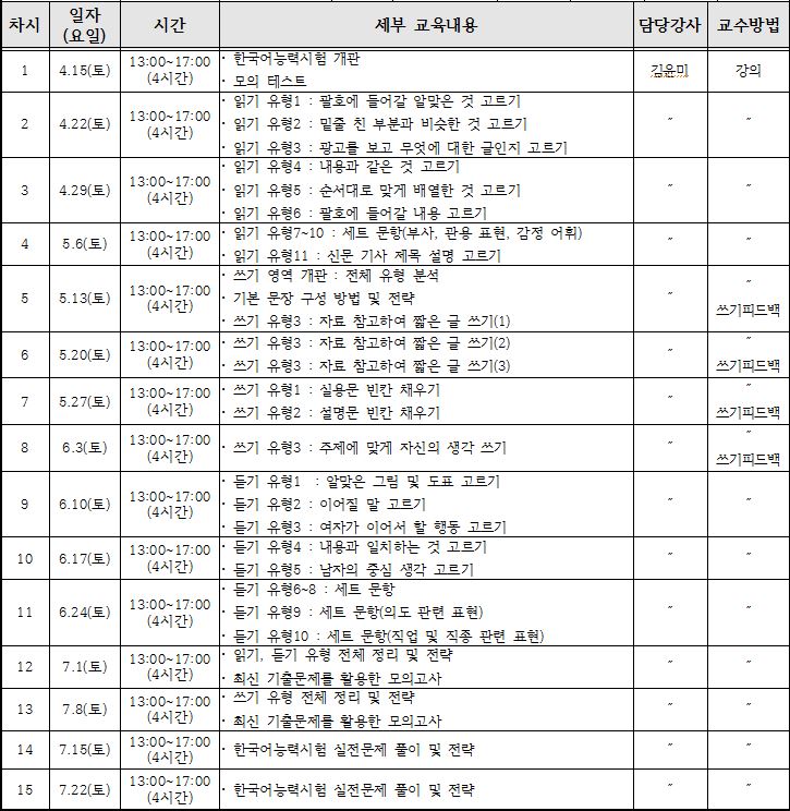 Geumjeong-gu dan Busan University of Foreign Studies (BUFS) bekerja sama membuka kelas TOPIKⅡ(Tingkat3~tingkat5) bagi Migran. Harap daftar orang yang menyiapkan TOPIK. ■ Penerimaan : tgl 31, Maret (Jumat) ~ tgl 14, April (Jumat), Busan University of Foreign Studies (BUFS) ☎509-6394~5 ■ Periode belajar : tgl15, April ~ tgl22, Juli (Setiap hari sabtu 13:00 ~ 17:00) ■ Jumlah orang : 40 orang ■ Tempat : Busan University of Foreign Studies, Global Center A413 ■ Biaya : 50,000 Won ( Kehadiran lebih 70% → Pengembalian 100%) ■ Isi