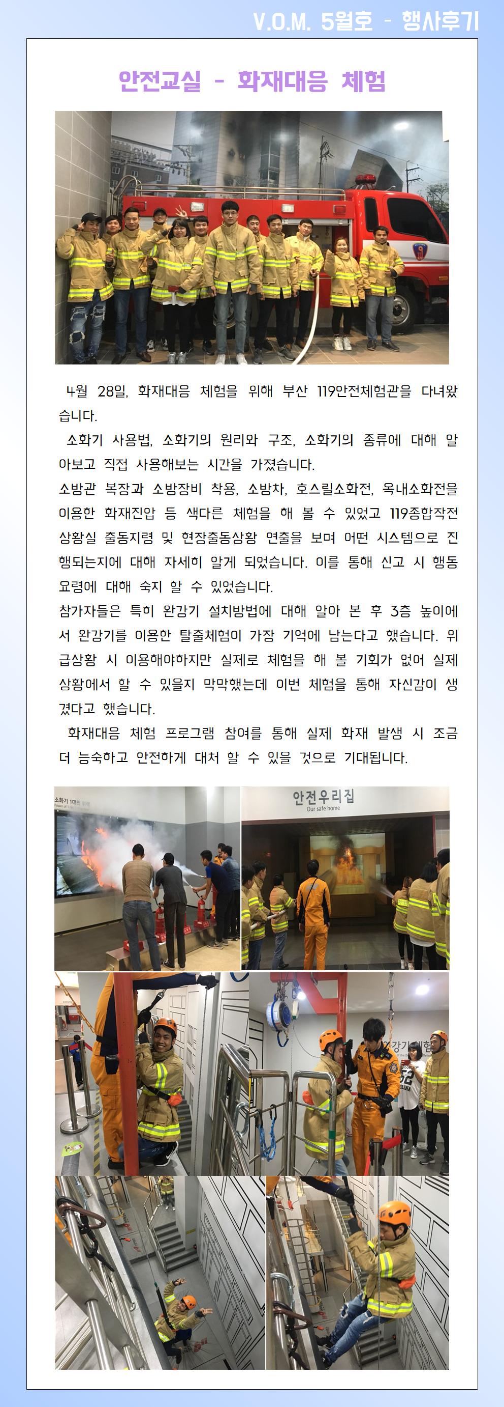 2019년 5월 – 안전교실 (화재대응 체험)